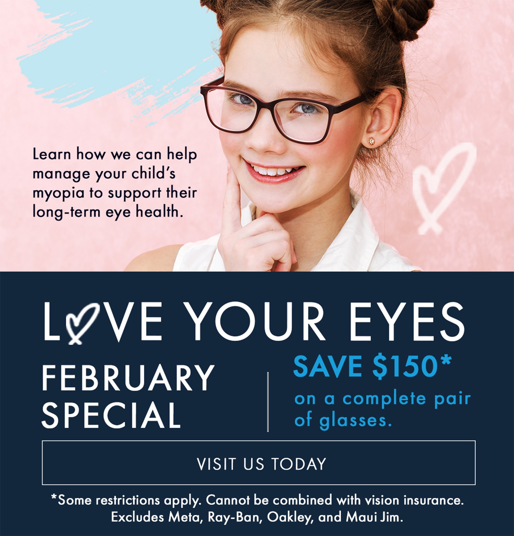 Detecting and managing myopia early can help improve your child’s quality of life. Myopia affects distance vision and increases the chances of serious eye conditions like cataracts, glaucoma, macular degeneration, and retinal detachment.